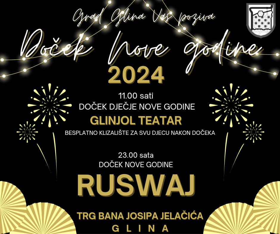 Novu godinu u Glini dočekajte uz odličnu atmosferu! Osim velikog i tradicionalnog dočeka, organiziran je i Dječji doček Nove godine s početkom u 11 sati uz Glinjoj teatar.