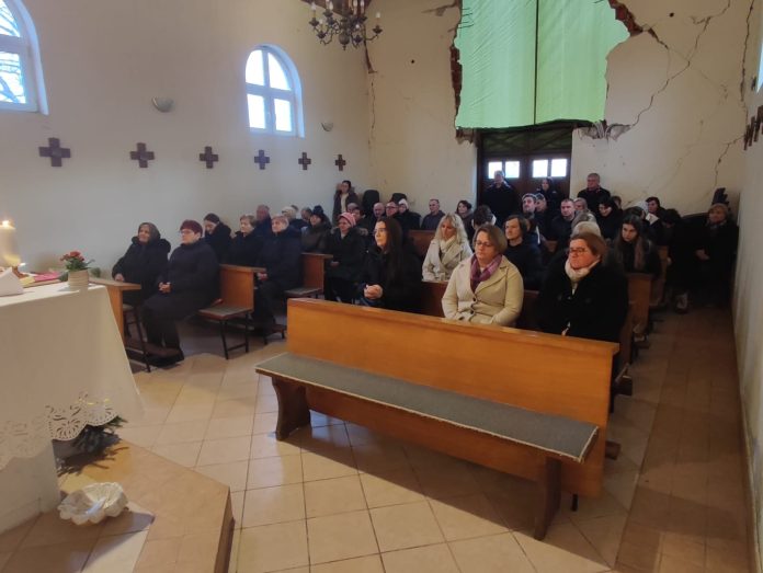 Unatoč vidljivim posljedicama potresa, pedesetak mještana sudjelovalo je na euharistijskom slavlju i tradicionalnom blagoslovu grla koje je predvodio župnik Saša Jozić