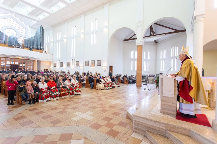 Biskup Košić u svojoj je homiliji istaknuo trostruko slavlje: treću adventsku nedjelju, Nedjelju Caritasa te blagoslov novih župnih prostora. Podsjetio je okupljene na važnost pripreme za Božić kroz radost i djela ljubavi, naglasivši kako je pravi temelj radosti Božji dolazak među ljude. Također, govorio je o primjeru Ivana Krstitelja koji je pozivao na obraćenje i nesebičnu pomoć potrebitima, istaknuvši važnost poniznosti i predanosti.